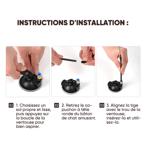 🔸Type ventouse : Vous pouvez le fixer au sol ou au mur, et le chat jouera avec. Vous pouvez séparer le bâton de la base, le tenir et jouer avec le chat.
