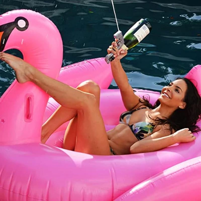 Facilement contrôlable: notre pistolet à champagne a des poignées incurvées pour une action détendue d'une seule main. Il peut être facilement connecté à n'importe quelle bouteille de champagne et tirer jusqu'à 30 pieds.